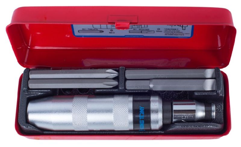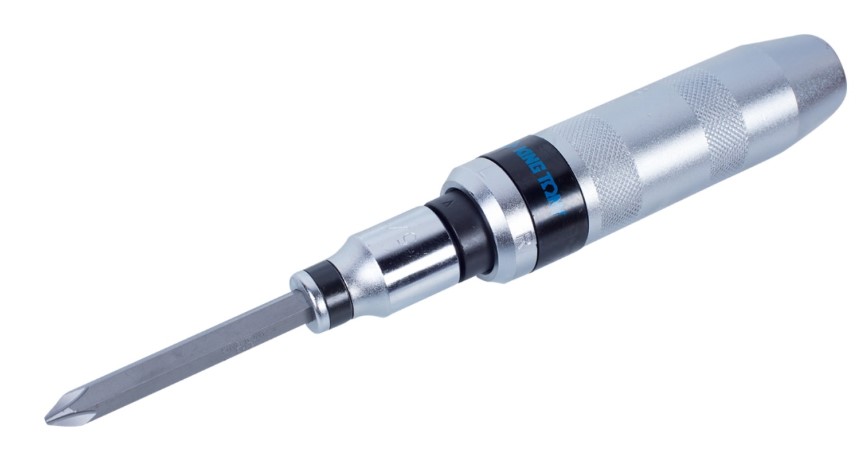 При ударе по торцу отвертки насадка поворачивается на 1–2 мм. Этого достаточно, чтобы ослабить проблемный крепеж. Поэтому ударная отвертка идеально подходит для начальной стадии работы с крепежом.