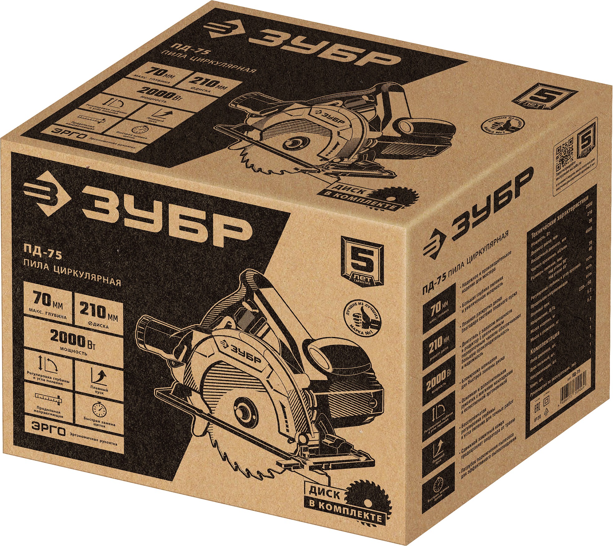 Дисковая пила ЗУБР ПД-75 создана для домашних мастеров и включает систему пылеудаления, которая поддерживает чистоту рабочего места и защищает от мелкой стружки. Для безопасности пользователя предусмотрены два защитных кожуха. С мощным двигателем эта пила может резать до 65 мм, что позволяет работать с фанерой, панелями и досками различных размеров. Удобные рукоятки и высокая мощность обеспечивают комфорт при использовании и точность реза.