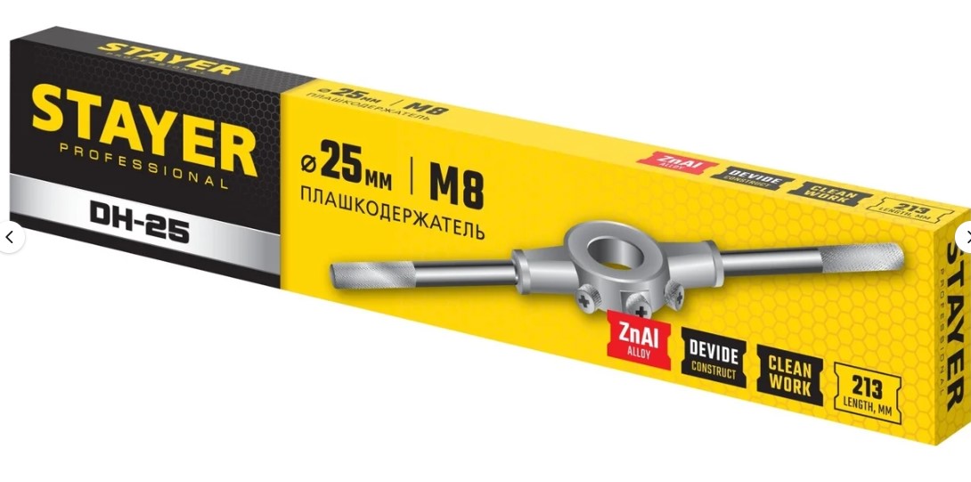 Плашкодержатель Stayer Professional 28037-30_z01 с размерами 30x250 мм оснащен длинными рукоятками, что обеспечивает удобство использования. Этот инструмент позволяет быстро и легко настроить положение плашки перед началом работы, что значительно упрощает процесс.