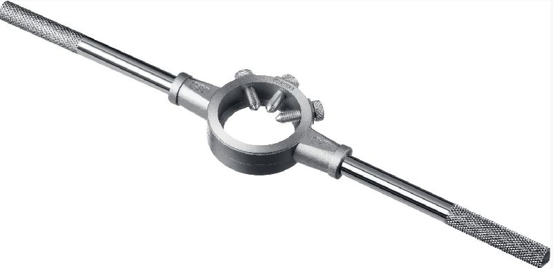 Плашкодержатель Stayer Professional 28037-50_z01, с длиной 50 мм и рукояткой 386 мм, отличается удлиненными рукоятками, что облегчает его использование. Инструмент позволяет быстро и удобно настроить положение плашки перед началом работы.