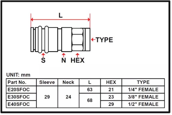 Пневморазъем быстросъемный композитный Licota E40SFOC “мама” для быстрого и герметичного соединения элементов пневмолинии.