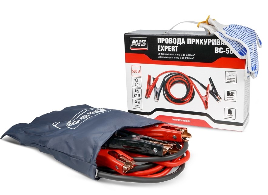 Провода прикуривания, сумка для хранения, перчатки