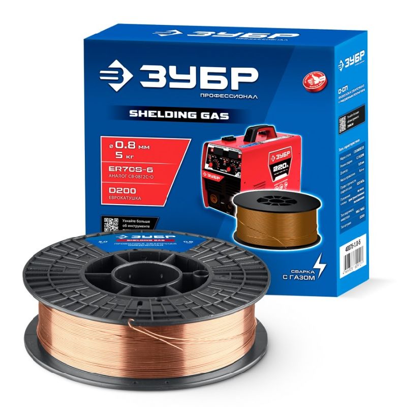Проволока омедненная 0,8 мм, 5 кг ER70S-6 (Св-08Г2С-О) ЗУБР О-СП