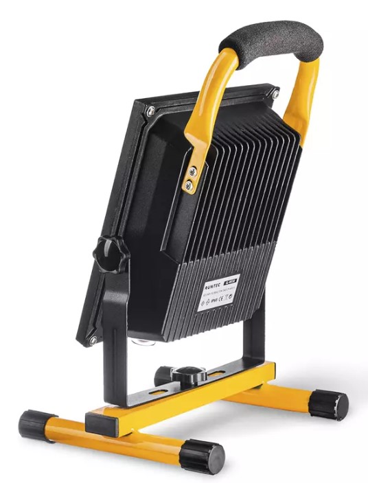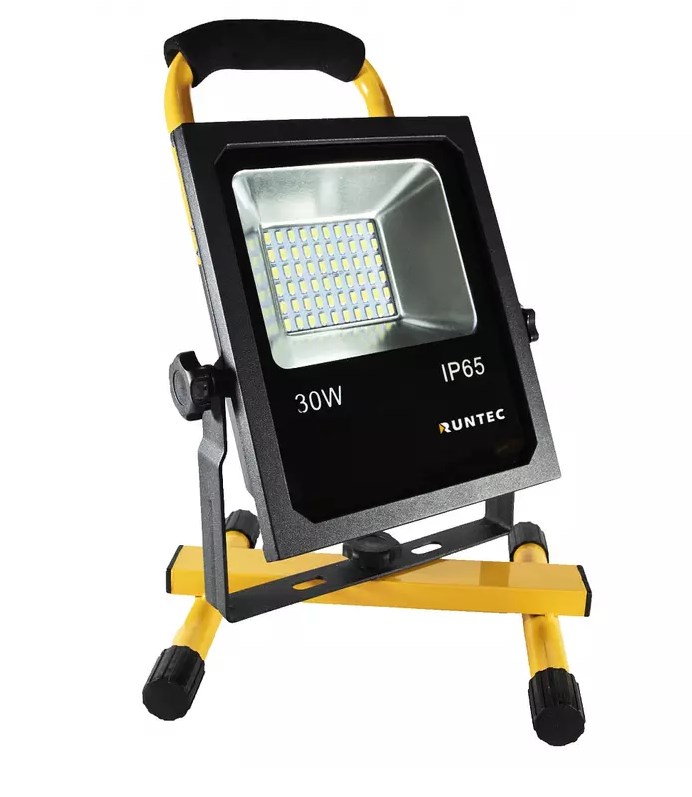 Переносной светодиодный прожектор для ремонта, строительства, освещения помещений, парковых аллей, фасадов зданий и отдыха на природе. Яркость светового потока 2400 Лм. Работает от аккумулятора 15600 мАч, не требует подключения к сети. Корпус из алюминиевого сплава, защищенный эпоксидной смолой. Водонепроницаемая заглушка, регулируемый угол наклона, мягкая ручка и стойка для установки.