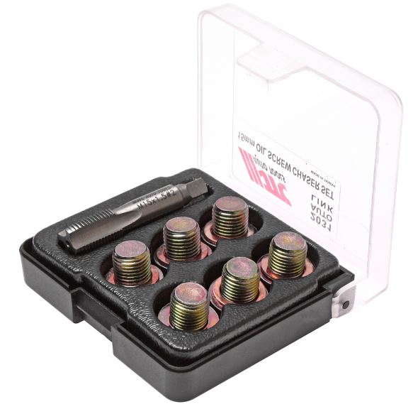Применяется для ремонта поврежденной или сорванной резьбы маслосливных отверстий двигателя размером 14 мм.