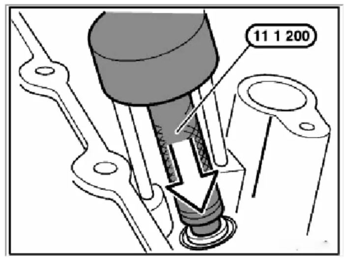 Он используется для установки маслосъёмных колпачков диаметром 7 и 8 мм на двигателях BMW.