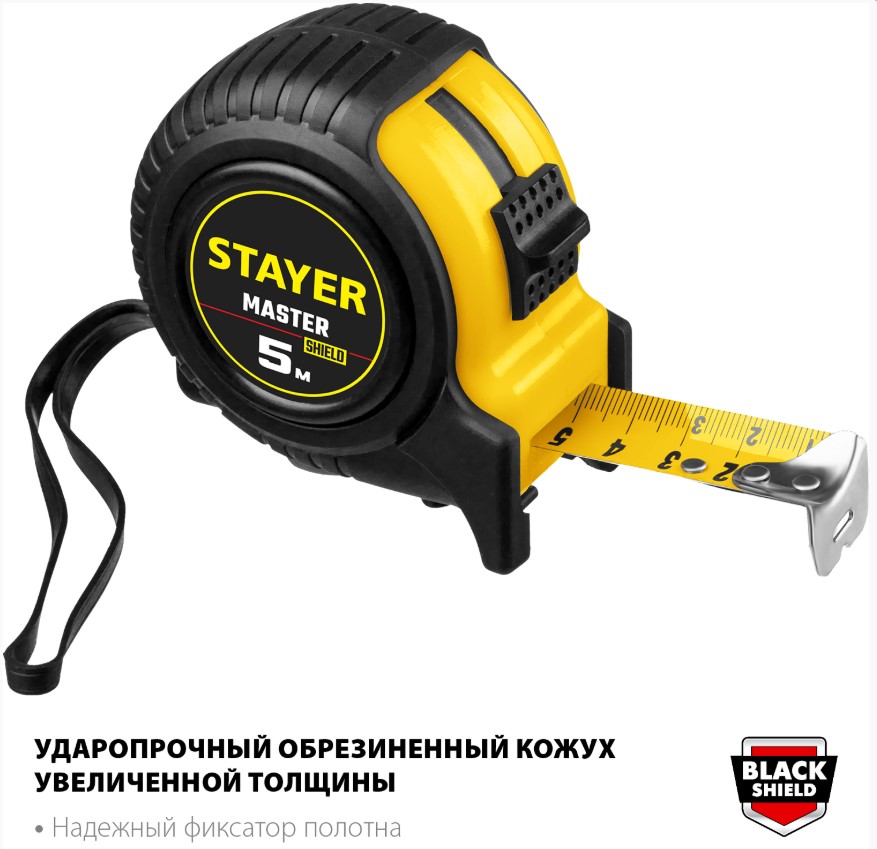 Рулетка 5 м*25 мм ударостойкий обрезиненный корпус STAYER