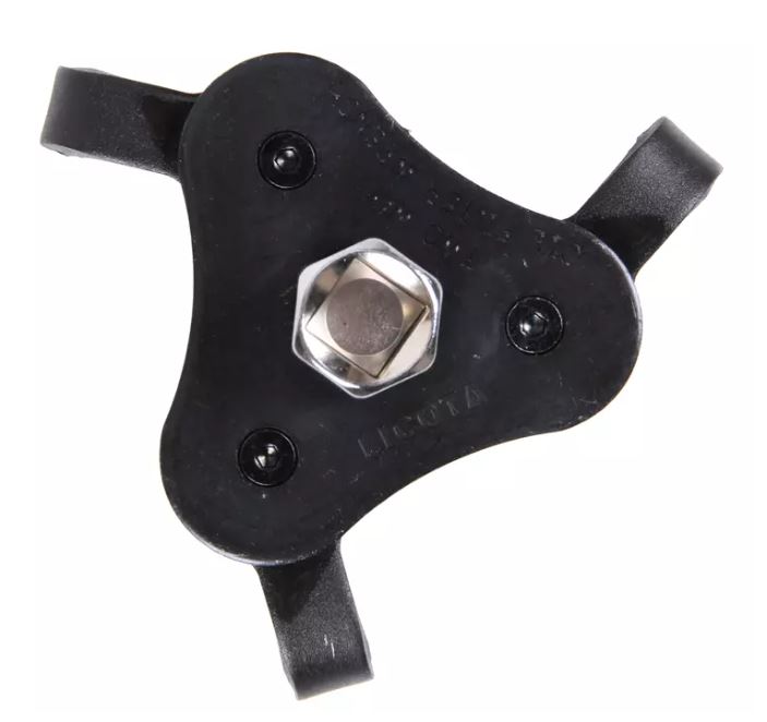 Используется с воротком или трещоткой с размером привода ⅜ или ½ дюйма, а также с ключом на 19 мм. Диапазон захвата - 63-100 мм.