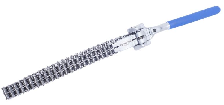 - Механизм фиксации звеньев цепи по нужному диаметру съёмника