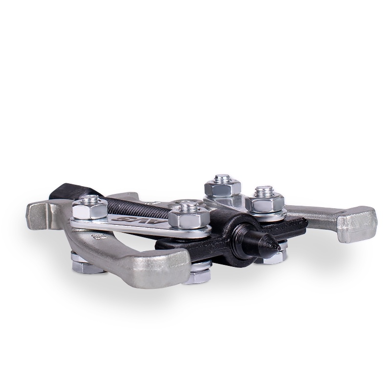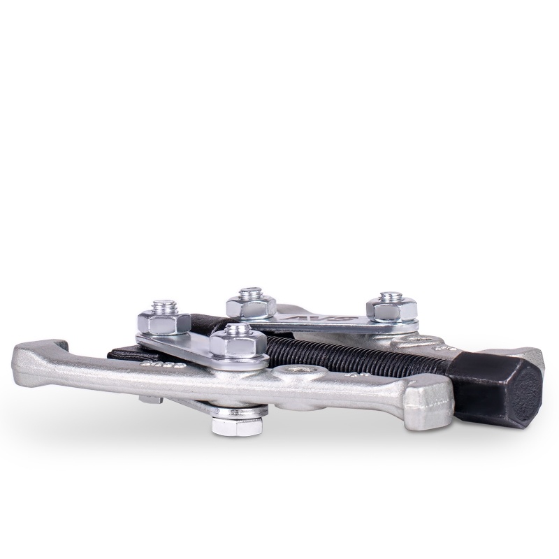 Применяется для демонтажа подшипников, шкивов, шестерней и других деталей, имеющих посадку с натягом. Шарнирная конструкция съемника надежно удерживает демонтируемую деталь. Дополнительные крепежные отверстия позволяют изменять конфигурацию съемника. Двусторонние переставные лапы дают возможность как внешнего, так и внутреннего захвата деталей.