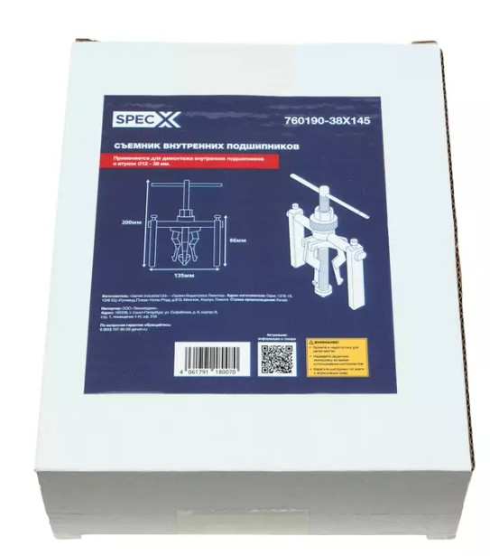 Съемник внутренних подшипников SPECX 760190-38X145 предназначен для демонтажа деталей с посадкой с натягом. Используется для снятия подшипников с посадкой по наружному кольцу в корпус агрегата, например, при демонтаже маховиков, помп, шкивов. Диапазон захвата - 19-38 мм. Изготовлен из высокопрочной инструментальной стали, устойчивой к коррозии, с закаленным винтом, выдерживающим высокие нагрузки. Применяется в автомобильных мастерских, на СТО и производствах.