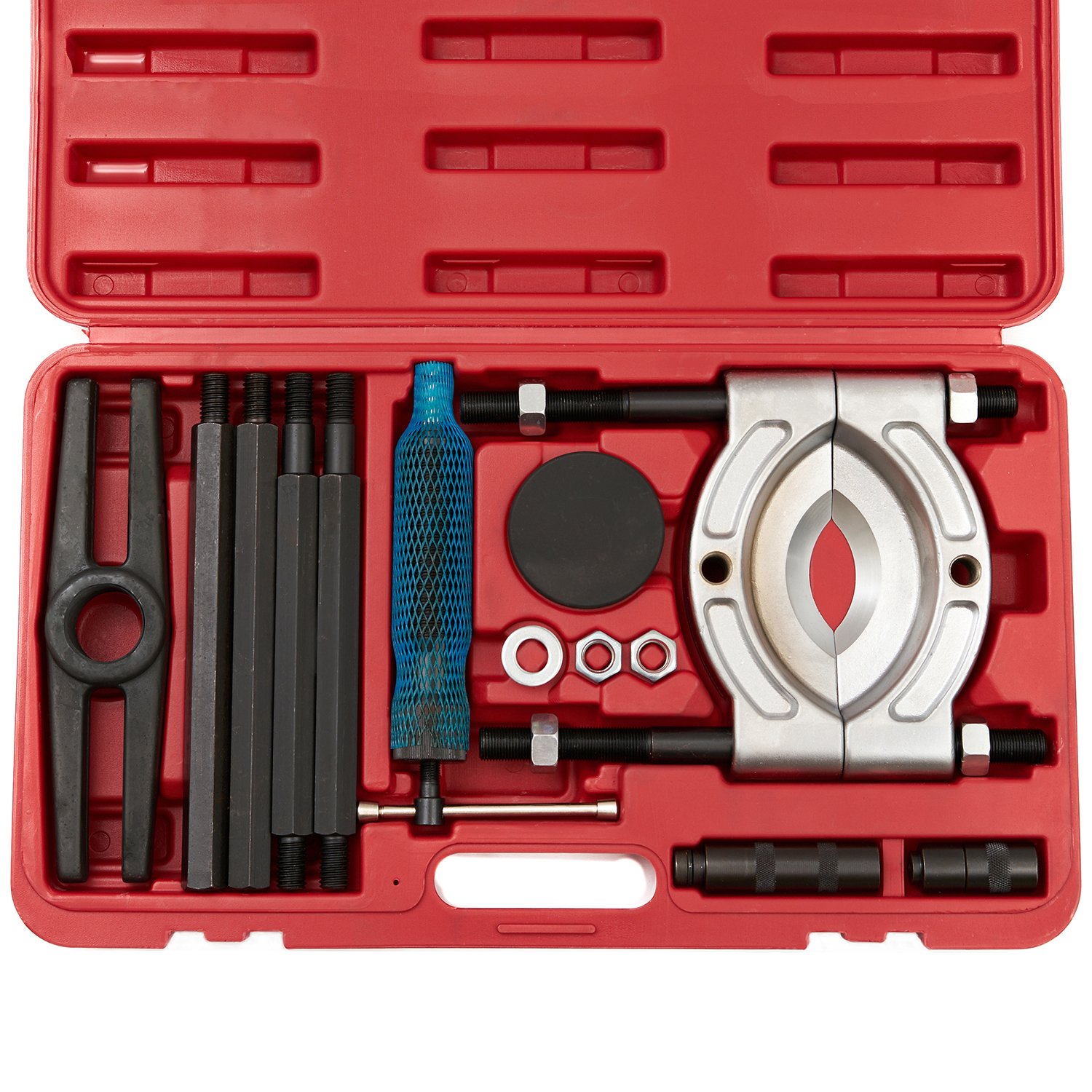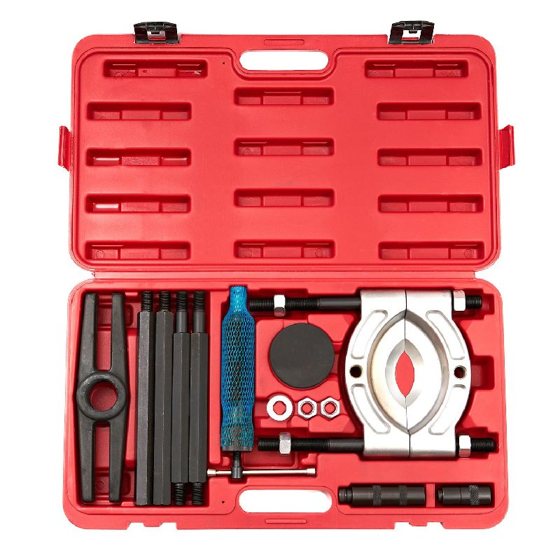 Съемник гидравлический с сепаратором ST010 часто применяется в автосервисах, на СТО и в др. местах, где есть необходимость съема нагруженных деталей транспорта, находящихся на расстоянии до 375 мм от опорной поверхности. Размер деталей варьируется от 105 до 150 мм. Захваты повышенной твердости (HRC 42-45) обеспечивают приспособлению продолжительный эксплуатационный срок и низкий уровень износа. Детали тянущейся части из углеродистой стали гарантируют его отличную работоспособность. Съемник поставляется в удобном пластиковом чемодане с ручкой, который занимает мало места и прост в транспортировке и хранении.