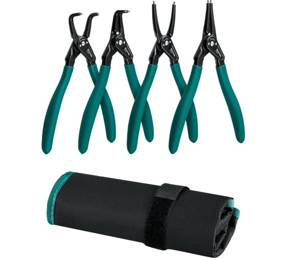 Набор съемников стопорных колец KRAFTOOL 4 шт., 180 мм 22812-H4 предназначен для монтажа и демонтажа внутренних или внешних стопорных колец. Запресованные наконечники из шарикоподшипниковой стали 100 Cr6 для тяжелых условий работы. Высокоточный шарнир с ходом без люфта. Фосфатированное покрытие защищает от коррозии. Большая площадь наконечников надежно удерживает стопорное кольцо. Маслобензостойкие рукоятки с нескользящим покрытием. Изогнутые наконечники для работы в труднодоступных местах. Нейлоновой чехол для удобного хранения и транспортировки.
