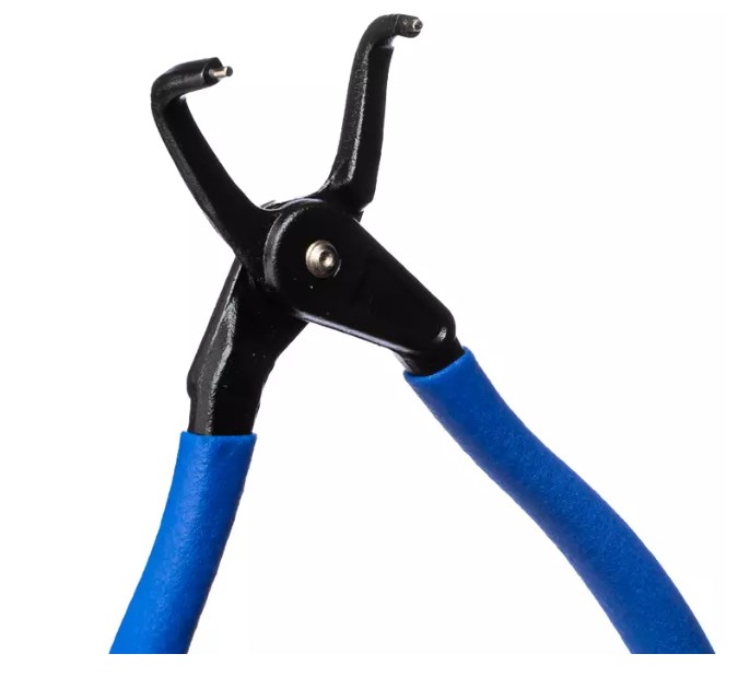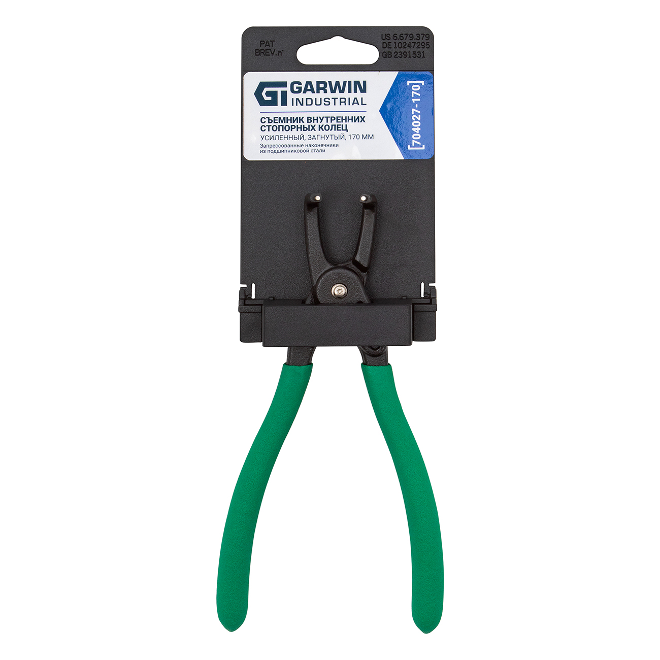 Съемник внутренних стопорных колец усиленный, загнутый ,из хром-ванадиевой стали и ручками из эргономичного нескользящего полимера. Наконечники - высокопрочная подшипниковая сталь. Съемник работает на сжим.