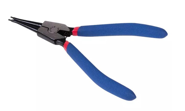 Инструмент для снятия внешних стопорных колец, изготовленный из хром-ванадиевой стали и оснащённый эргономичными нескользящими ручками из полимера.
