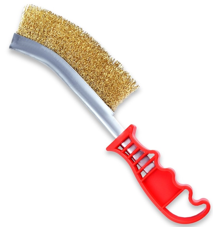 Щетка по металлу 1-но рядная с изогнутой пластиковой ручкой латунированная AVS MB-01