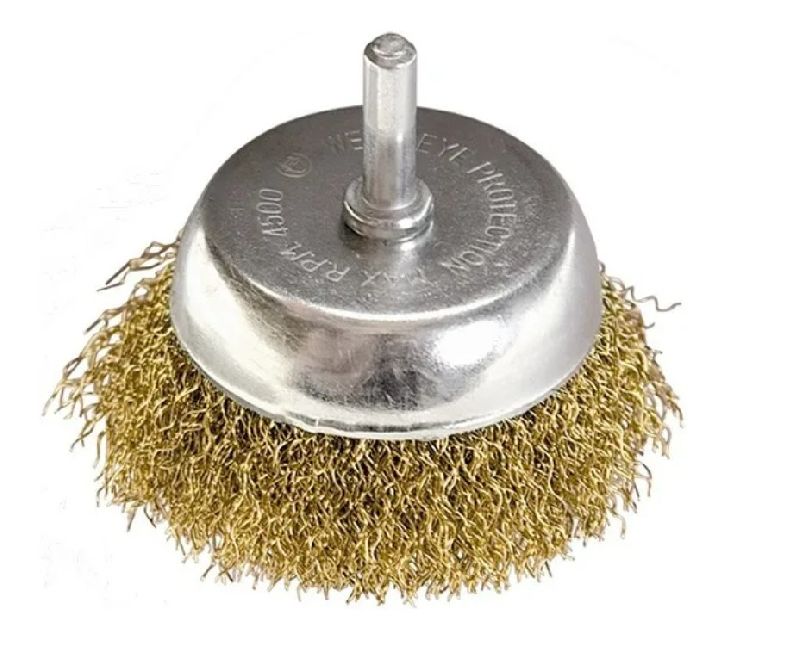 Щетка для дрели «чашка» Matrix 74475 диаметром 50 мм, со шпилькой, с щетиной из латунированной витой проволоки, используется для очистки металлических, деревянных и пластиковых поверхностей от незначительных загрязнений и остатков лакокрасочных покрытий. Помогает подчеркнуть структуру материала или придать ему шероховатость. Форма чашки позволяет обрабатывать плоские участки большой площади. Хвостовик диаметром 6 мм устанавливается в патрон электродрели, поддерживающей скорость 4500 об/мин. Во время работы нужно использовать средства индивидуальной защиты — респиратор, очки, наушники, спецодежду и обувь.