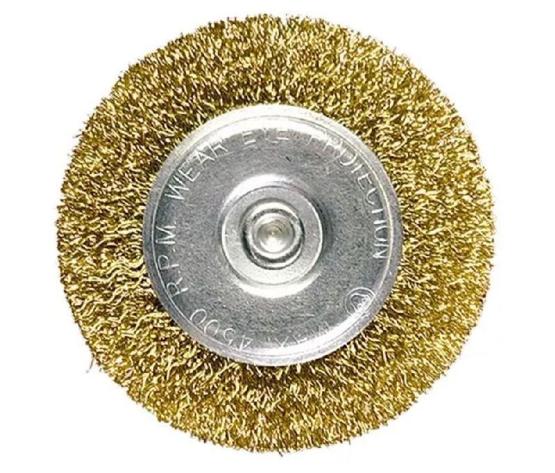 Плоская щетка для дрели Matrix 74448 диаметром 75 мм, со шпилькой, с щетиной из латунированной витой проволоки, предназначена для бережной очистки металлических, деревянных, пластиковых поверхностей от загрязнений, старых лакокрасочных материалов и ржавчины. Витая проволока диаметром 0,3 мм проникает в труднодоступные места: пазы, углы, изгибы, узкие участки. Насадку применяют для придания поверхности нужной шероховатости или подчеркивания структуры материала.