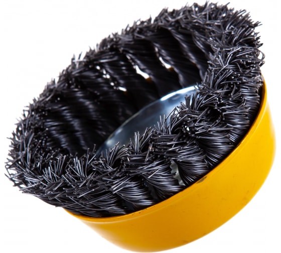 Чашечная щетка "MASTER" STAYER применяется в качестве насадки для угловых шлифовальных машин. Она предназначена для шлифовки, полирования, матирования, зачистки от лака, краски и коррозии различных поверхностей и изделий. Рабочая часть состоит из скрученной в пучки стальной проволоки диаметром 0.5 мм. Латунное покрытие защищает проволоку от коррозии и препятствует возникновению процессов искрения при обработке поверхностей. Посадочное отверстие имеет резьбу М14. Специальная форма диска в виде чаши и плетеные пучки позволяют работать в труднодоступных местах.