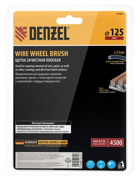 Щетка дисковая 100 мм/22 мм для УШМ плоская, нейлоновая щетина Denzel