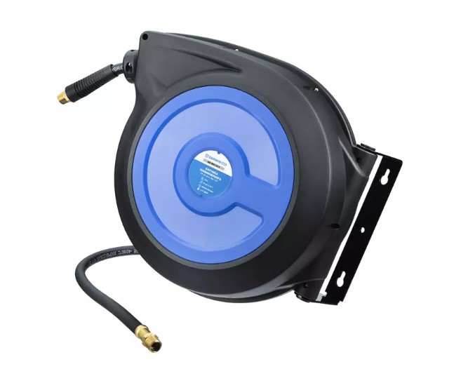 Катушка пневмошланга Garwin GE-RH1315 в пластиковом корпусе. Длина шланга - 15 м. Внутренний диаметр шланга - 12 мм. Диаметр внешней резьбы на вход и на выход - ½ дюйма.