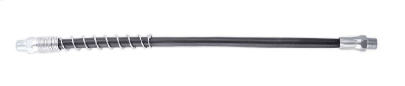 Предназначен для соединения смазочного шприца с насадкой плунжерного шприца. За счет гибкости помогает обеспечивать более удобную подачу смазочного материала к деталям механизма где применение жесткой трубки не возможно. Усиленная конструкция с защитной пружиной обеспечивает большее максимальное давление.