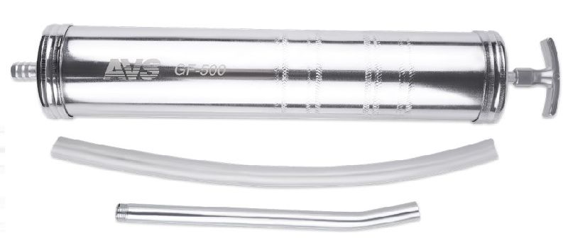 Шприц для заливки масла AVS GF-500 имеет объём 500 мл и оснащён гибким шлангом.