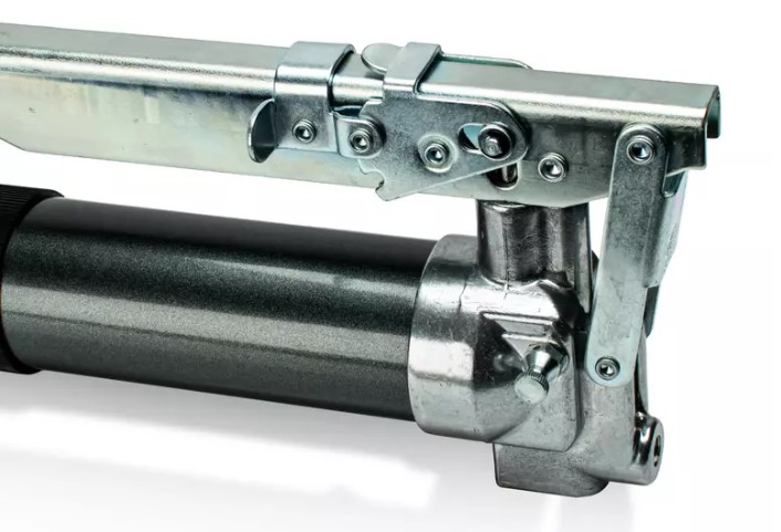 Переключатель плунжеров позволяет изменять давление, что дает возможность использовать шприц в двух режимах: с давлением 13000 PSI и 2000 PSI. Шприц можно заполнять вручную или с помощью картриджа со смазкой объемом 400 мл. В комплекте идет гибкий шланг для масла с четырехлепестковым наконечником.