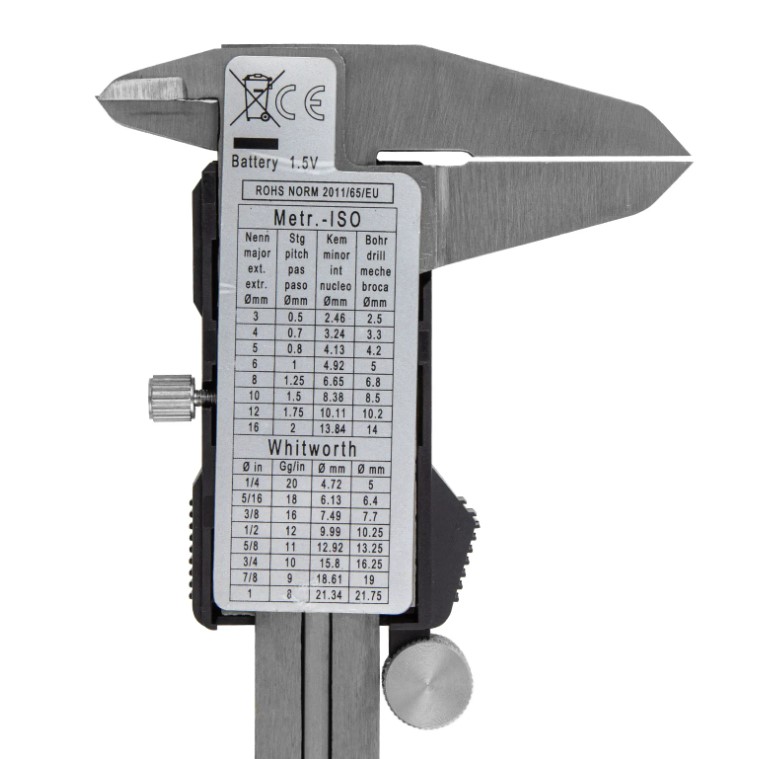 Электронный штангенциркуль Matrix 31611 со шкалой 150 мм предназначен для определения внутренних и наружных размеров различных предметов, а также глубин отверстий и канавок — для этого предусмотрен глубиномер. Цифровой инструмент позволяет проводить точные замеры, т.к. его погрешность составляет ±0,02 мм при измерении размеров до 100 мм, и ±0,03 мм — свыше 100 мм. Результаты отображаются на жидкокристаллическом дисплее, поэтому считывание показаний происходит легко и быстро. Штангенциркуль пригодится на производстве, в слесарной и столярной мастерской, а также дома или в гараже.