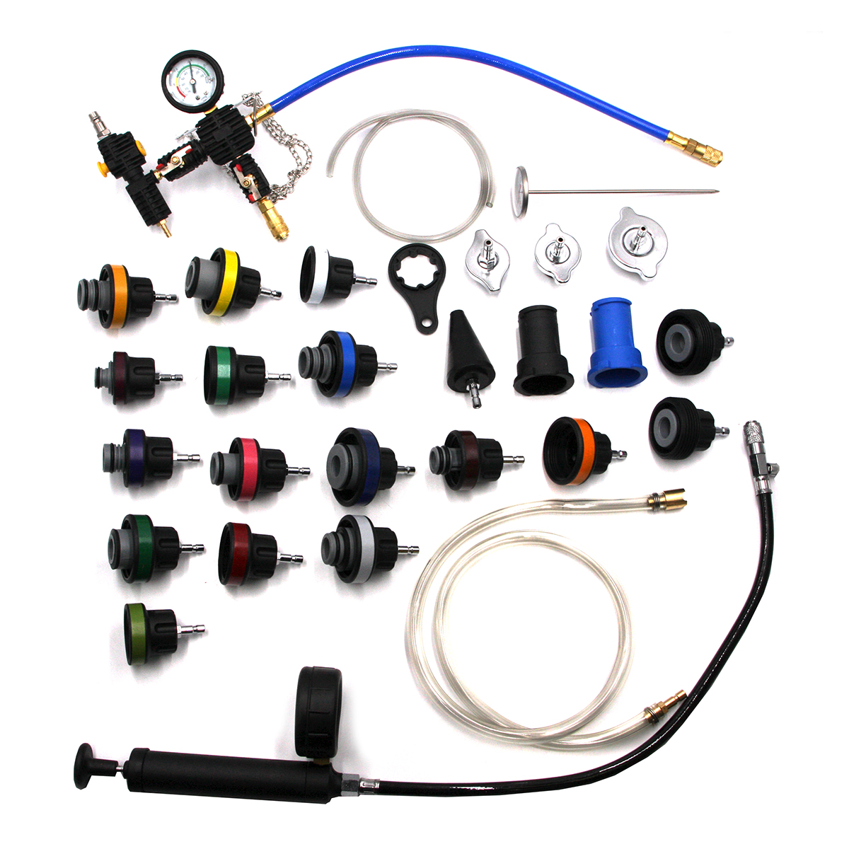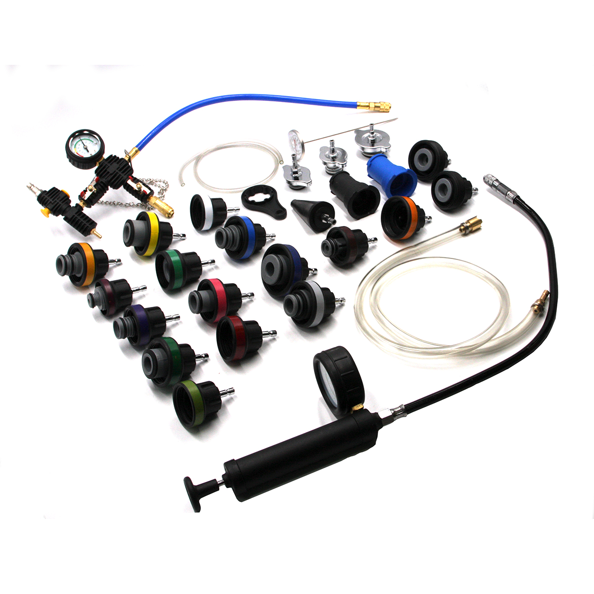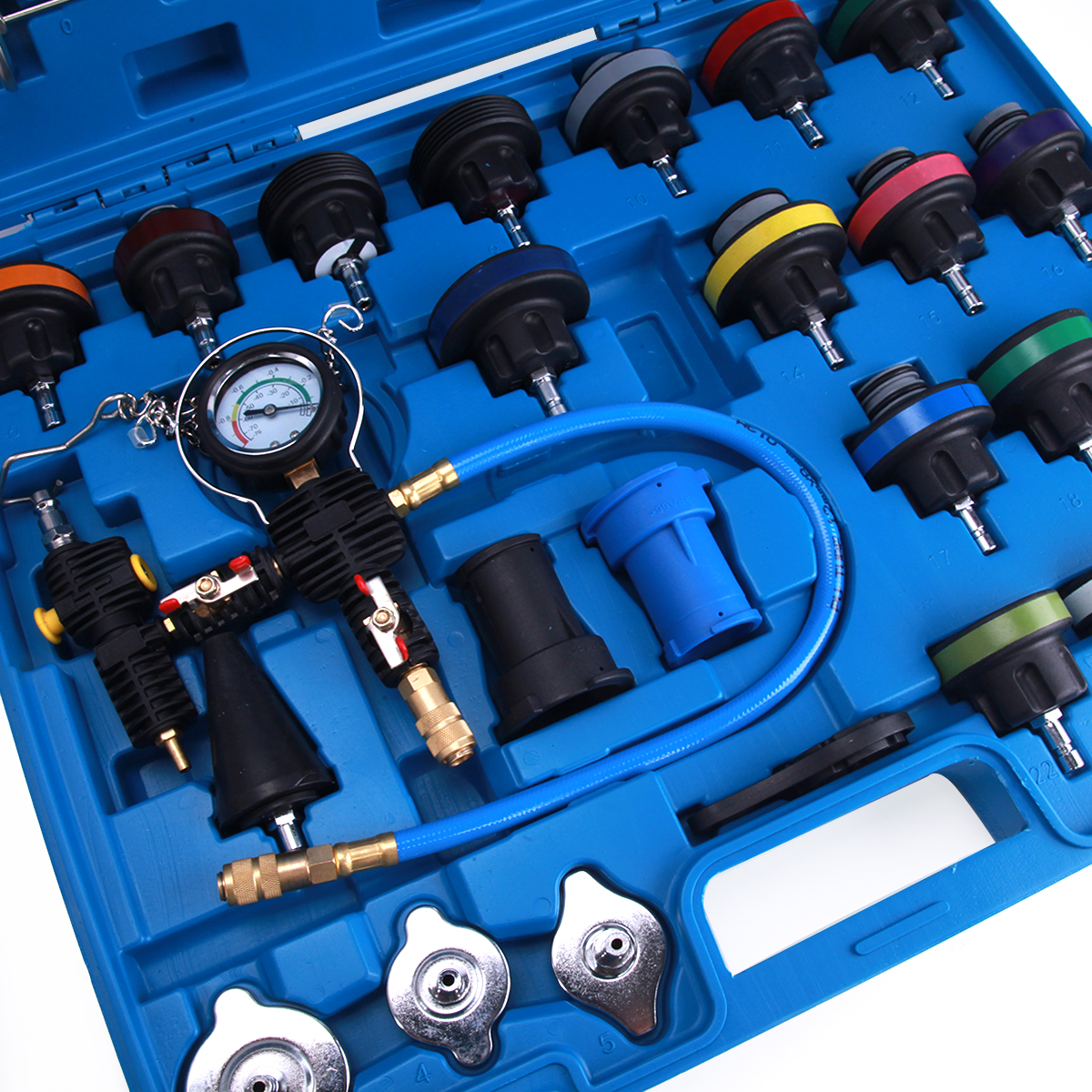Комплект для диагностики целостности системы охлаждения, включающий 28 компонентов, предназначен для проверки на герметичность системы охлаждения транспортных средств. Этот набор позволяет провести диагностику системы охлаждения практически любого автомобиля, независимо от года выпуска.