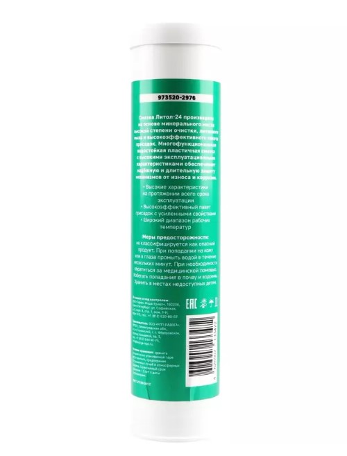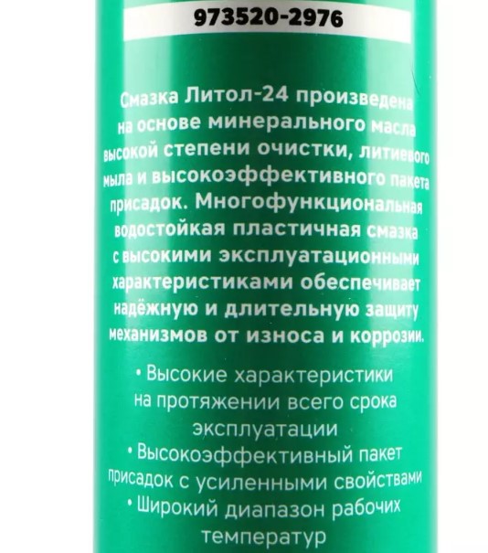 Смазка Литол-24 произведена на основе минирального масла высокой степени очистки, литиевого масла и высокоэффективного пакета присадок. Многофункциональная водойстойкая пластичная смазка с высокими эксплуатационными характеристиками обеспечивает надеждную и длительную защиту механизмов от износа и коррозии.