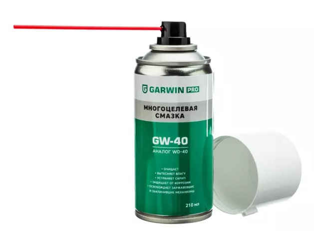 Многоцелевая смазка GARWIN PRO GW-40 (973520-3210) — синтетическая смазка в аэрозоле (210 мл) для защиты и смазывания механизмов, подшипников и резьбовых соединений в условиях высоких нагрузок и экстремальных температур.