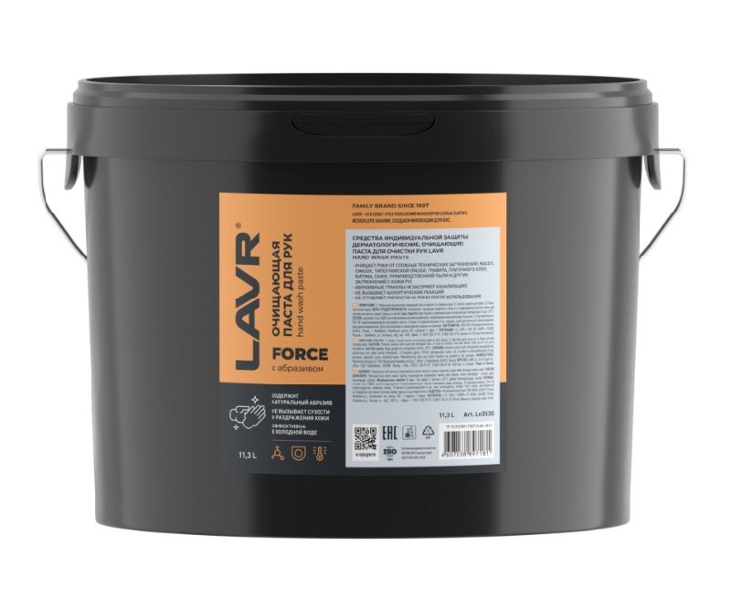 Очищает кожу рук от сложных технических загрязнений: масел, смазок, типографской краски, графита, плиточного клея, битума, сажи, производственной пыли и других загрязнений.