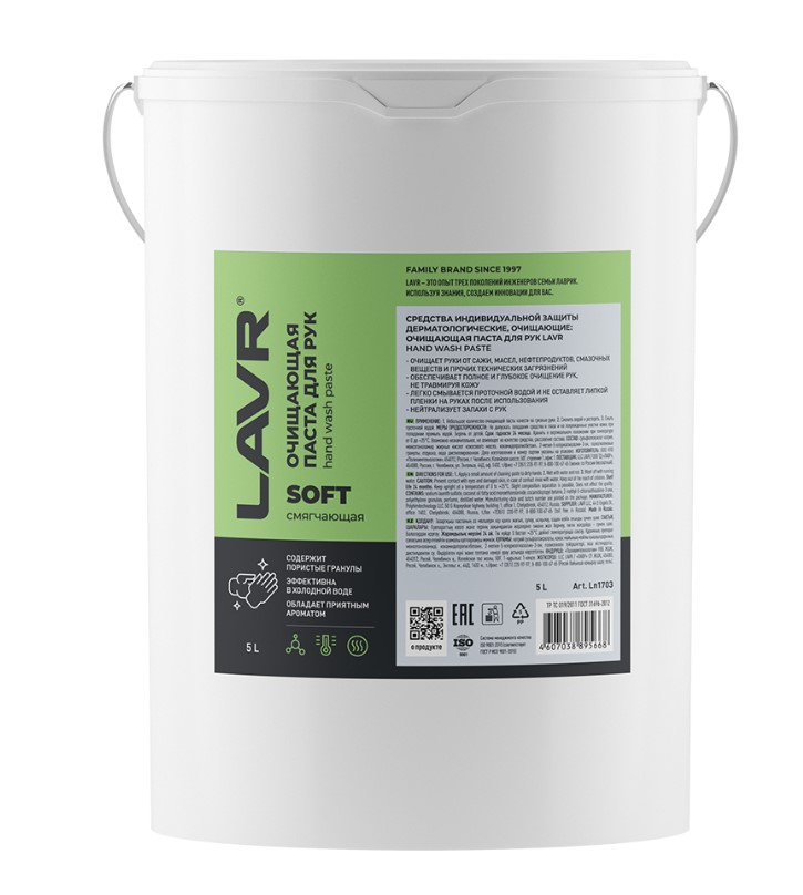 Паста удаляет сложные технические загрязнения рук. Пористые скраб-гранулы, входящие в состав, обеспечивают полное и глубокое очищение кожи, не травмируя ее. Состав эффективен против всех видов загрязнений, включая пятна от масла, смазок, битума, сажи, графита. Паста проста и удобна в применении, хорошо пенится, быстро смывается проточной водой.