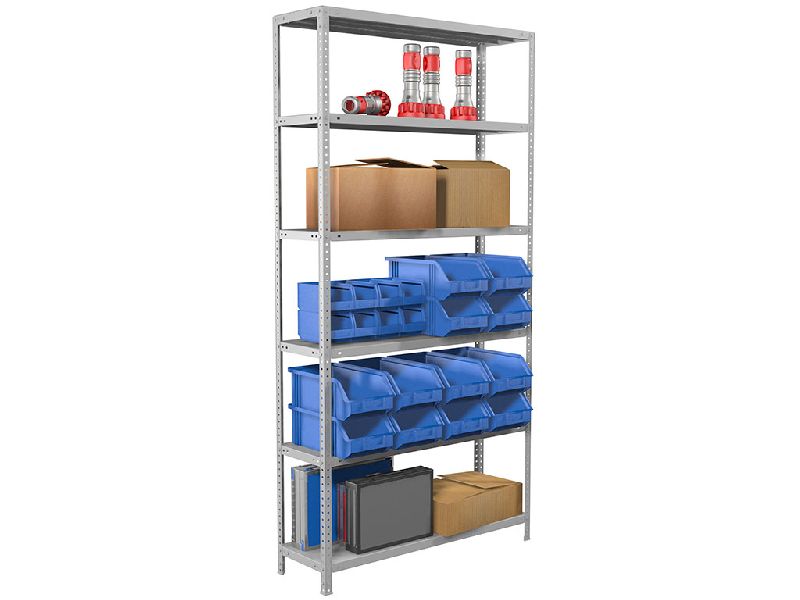- два вида усилителя стоек и полок: Г-образный, сборка осуществляется с использованием резьбового крепежа (болты и гайки), и Т-образный, сборка без гаек. (Комплекты стеллажей собираются при помощи болтов, без гаек).