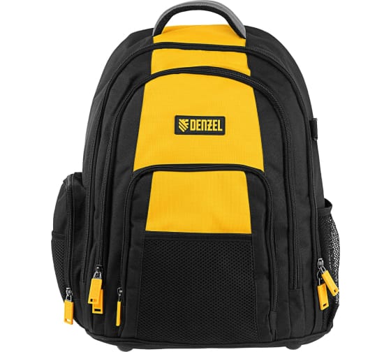 Рюкзак Denzel 90296 размером 365 х 190 х 430 мм, с 3 отделениями и 26 карманами (в том числе сетчатыми), предназначен для размещения и транспортировки ручного инструмента. 3 секции позволяют организовать упорядоченное хранение всех необходимых предметов. Рюкзак пригодится выездному мастеру.