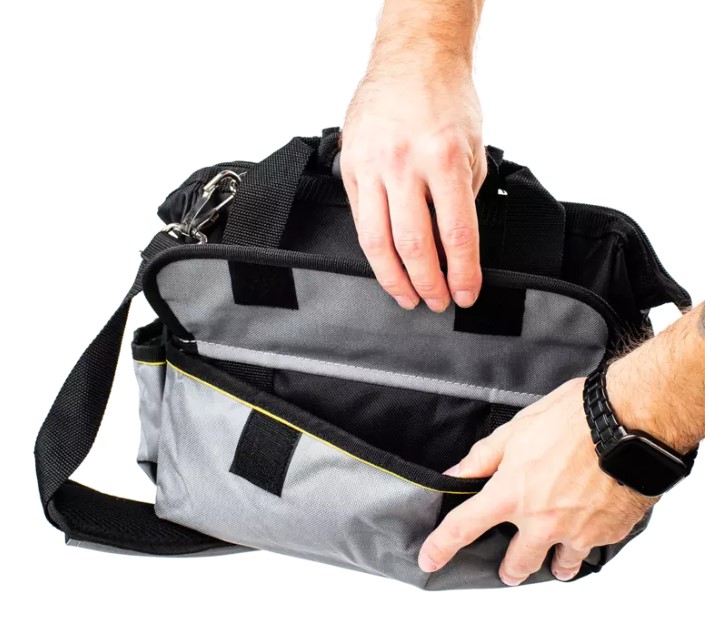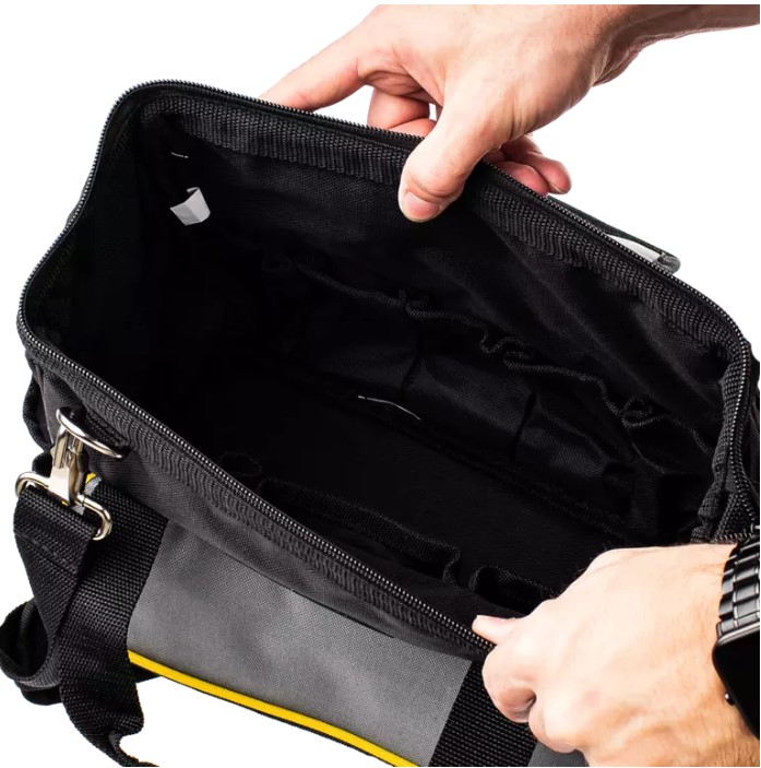 Сумка RUNTEC RT-TB11 отлично подходит для хранения и переноса инструмента. Она имеет 5 внешних карманов, 1 на липучке и вместительный основной отсек. Изготовлена из прочного влагонепроницаемого материала 1680D, не содержит токсичных веществ, и имеет жесткое дно для устойчивости. Молния обеспечивает удобный доступ, а мягкая накладка на ручках и плечевой ремень делают переноску комфортной.