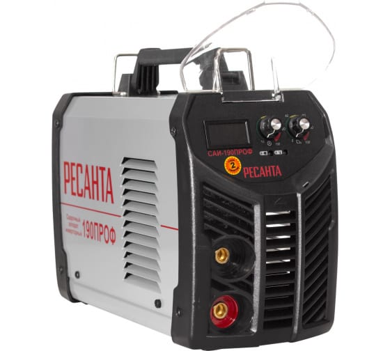 Сварочный инверторный аппарат Ресанта САИ 190 ПРОФ служит для ручной электродуговой сварки покрытым электродом элементов конструкций выполненных из стали. На передней панели расположен регулятор сварочного тока, который позволяет выставить нужный ток в зависимости от диаметра электрода и функции «ARC FORCE» (форсаж дуги).