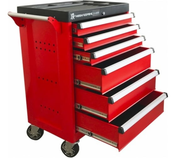Инструментальная тележка МОБИЛСЕРВИС JS-6006 - оснащена шестью ящиками и полками, которые плавно двигаются по направляющим. Большая вместимость позволяет размещать все необходимые инструменты и приспособления для выполнения столярных или слесарных операций, работ по ремонту и обслуживанию автомобилей и мн. др. Наличие колес обеспечивает возможность легкого перемещения по мастерской или гаражу. Представленная модель выполнена из высококачественных материалов, отличается прочностью и долговечностью. Корпус покрыт порошковой краской.