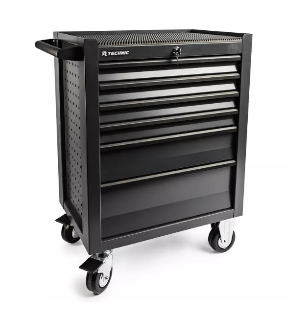 Профессиональная инструментальная тележка RUNTEC TECHNIC предназначена для хранения и удобного перемещения инструмента на производстве, в автосервисах, мастерских, а также в ремонтных и технических зонах. Эта тележка сочетает мобильность, надёжность и эргономику, обеспечивая порядок и быстрый доступ к инструменту в любой рабочей обстановке. Увеличенные колёса Ø125 мм обеспечивают плавное перемещение даже по неровному полу. Функция блокировки колёс.
