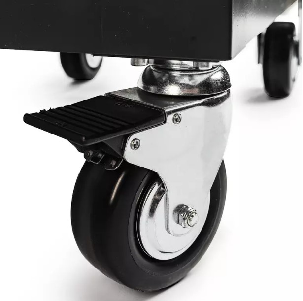 Максимальная нагрузка — 550 кг, подходит для тяжёлого оборудования и оснастки. Увеличенные колёса Ø125 мм с функцией блокировки.