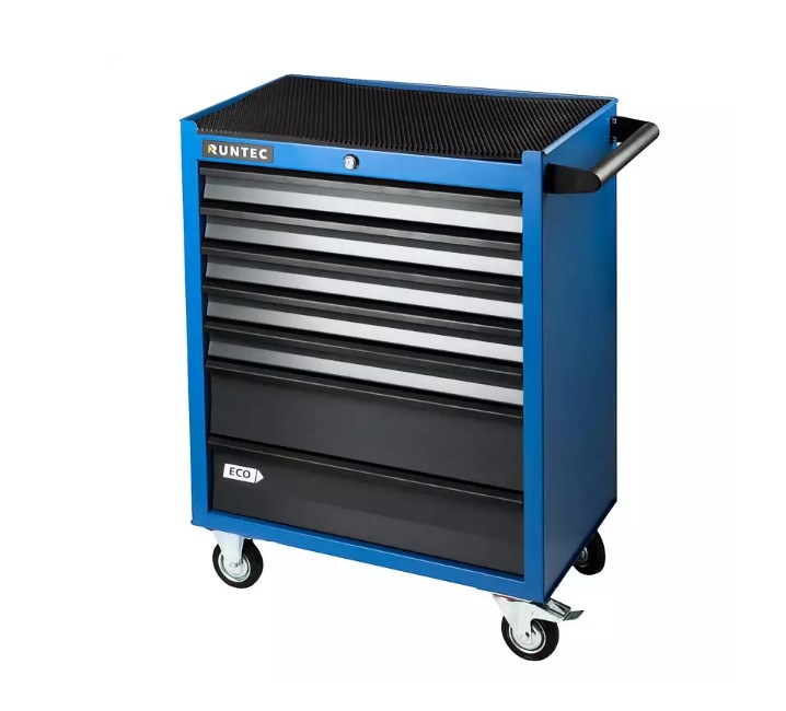 Тележка для хранения инструмента RUNTEC RTEC-7B серая относится к категории безрамных конструкций и весит меньше, чем аналог рамного типа. Тумба надежно защищена от коррозии и механических воздействий специальным порошковым покрытием. На ручки нанесен долговечный защитный шероховатый слой «soft-touch». За защиту от несанкционированного доступа к содержимому ящиков отвечает надежный центральный замок.