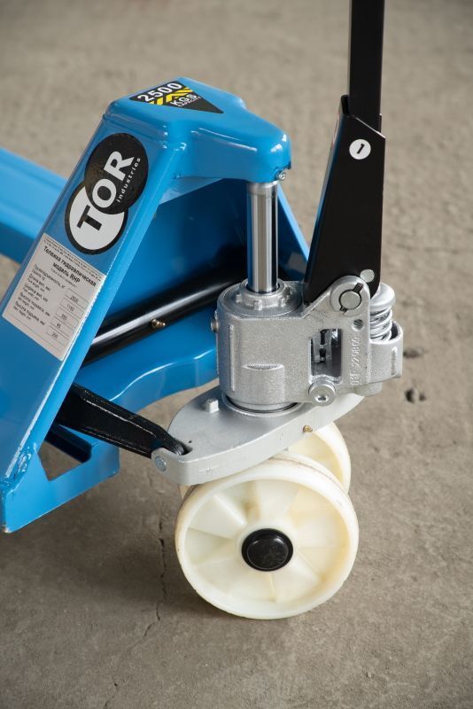Гидравлические тележки TOR RHP– это серия очень надежных тележек. Серия специально предназначена для интенсивной работы на предельных нагрузках. Данная модель является стандартной. Грузоподъемностью 2.5 тонны – для обработки грузов на стандартных евро паллетах. В данной модификации применен надежный литой гидроузел и нейлоновые колеса. Колеса тележки не боятся порезов и широкого спектра химически агрессивных средств. Хотите купить качественную рохлю и просто работать, не думая о ремонте – серия RHP для вас. При соблюдении правил эксплуатации тележка RHP прослужит очень долго.