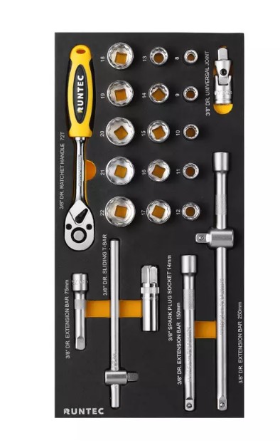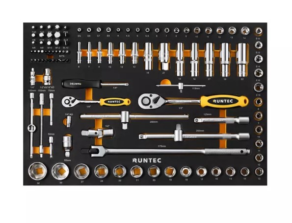 Инструментальная тележка RUNTEC Standart серая с 6 выдвижными полками является идеальным решением для специалистов автосервисов. Набор из 220 предметов располагается в ложементах, которые идеально помещаются на полках.