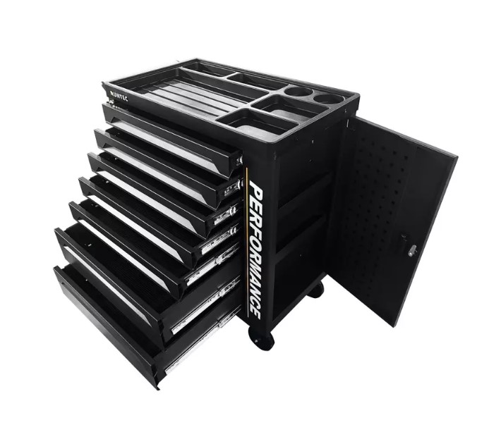 Тележка инструментальная 7 полок, 273 предм, пласт. столешница, дверца RUNTEC Performance