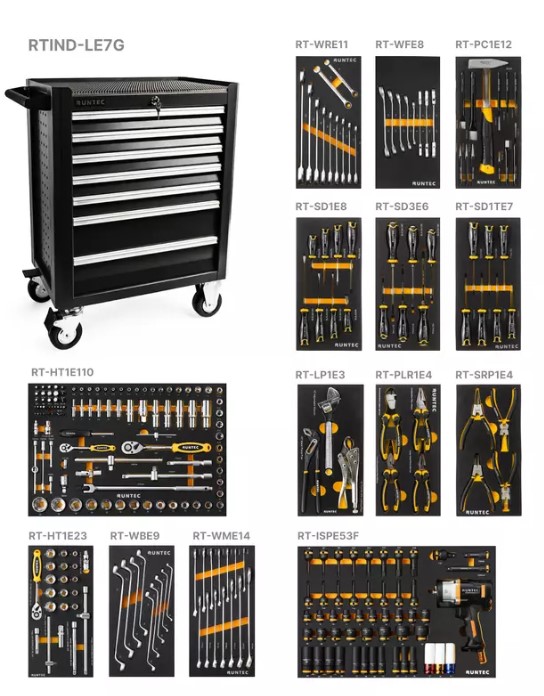RT-LP1E3 Набор ручных инструментов RUNTEC клещи зажимные, клещи переставные, ключ разводной в ложементе EVA, 3 пр