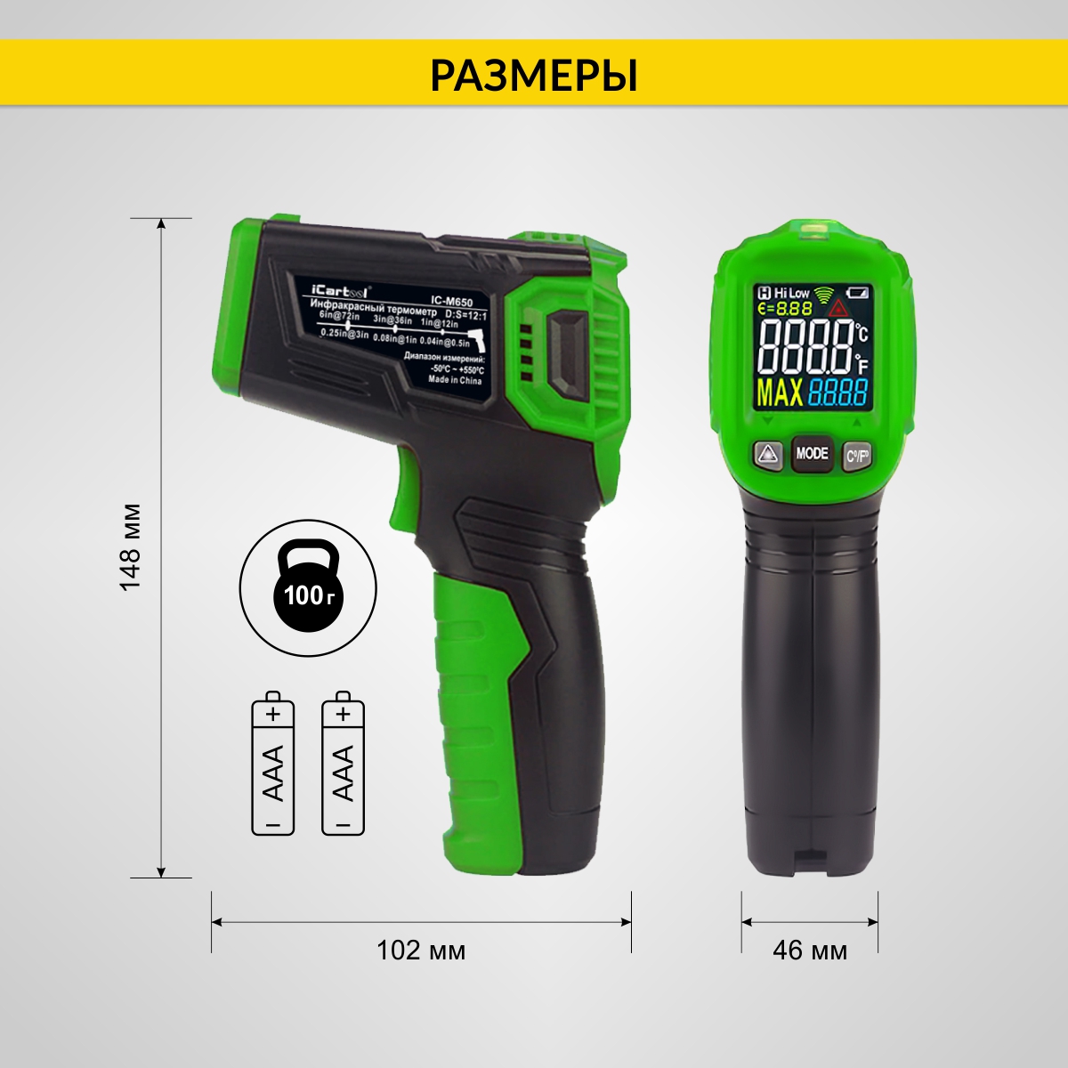Диапазон измерения температуры от -50 °С до +550 °С