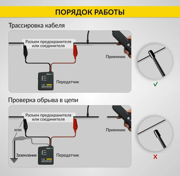 Тестер для определения коротких замыканий и обрывов цепей iCartool IC-330 предназначен для поиска и локализации обрыва цепи, а также коротких замыканий.