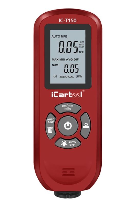 Толщиномер IC-T150 автоматически определяет тип металла (черный или цветной) и измеряет толщину лакокрасочного покрытия на любой металлической поверхности. С его помощью можно определить толщину краски, эмали, грунтовки, лака или меди. Устройство оснащено информативным дисплеем, который отображает два значения одновременно: текущее измерение и статистику предыдущих замеров. В комплект входят набор для самостоятельной калибровки датчика и шнурок для удобной переноски.