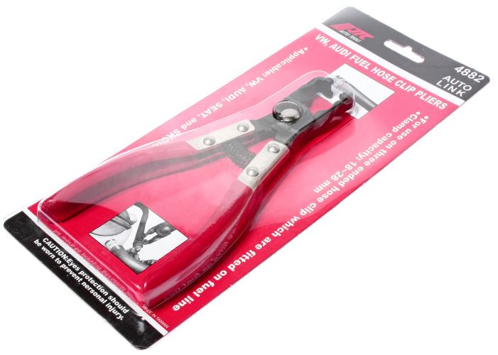 Съемник хомутов топливных шлангов JTC-4882 предназначен для автомобилей Volkswagen, Audi, Seat и Skoda. Этот инструмент, также известный как демонтажные клещи, обеспечивает удобство в использовании благодаря специальным накладкам на рукоятках, которые предотвращают проскальзывание. Ширина захвата съемника варьируется от 18 до 28 мм, что позволяет эффективно работать с различными топливными шлангами.